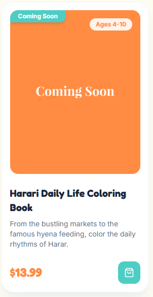 Ameshna Studio is dedicated to celebrating and preserving Harari culture through creative educational materials for children. Our coloring books and games introduce young minds to the beauty of Harari traditions, architecture, clothing, and daily life while encouraging imagination and artistic expression.